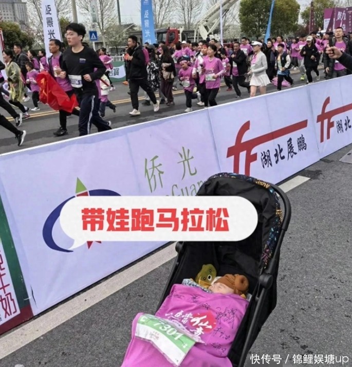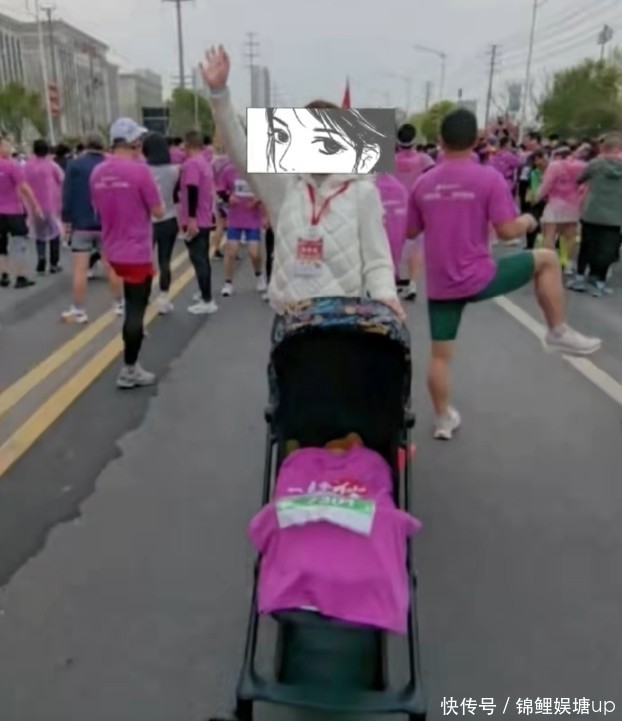 而在跑步过程中,也有人拍到了一位推着婴儿车的女性。