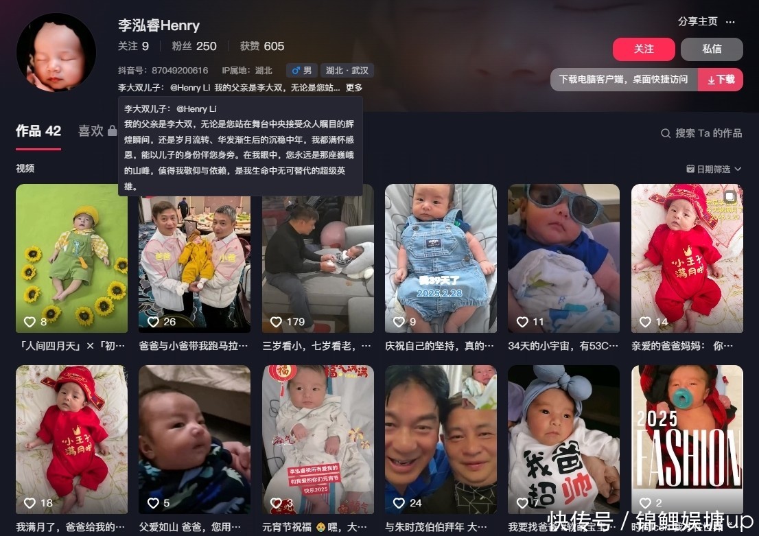 他还专门为李泓睿创建了一个社交账号,专门用来分享儿子的日常生活。